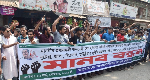 আমতলী (বরগুনা) প্রতিনিধি॥ আমতলী উপজেলার ইউনিয়ন পরিষদ নির্বাচনে দুর্নীতিবাজ ও হাইব্রীড নেতাদের দেওয়া নৌকার মনোনয়ন পুর্ণ:বিবেচনার দাবীতে সোমবার সকাল ১১ টায় আওয়ামীলীগের একটি অংশ উপজেলা তৃণমুল আওয়ামীলীগ ব্যানারে এক মানববন্ধন কর্মসূচী