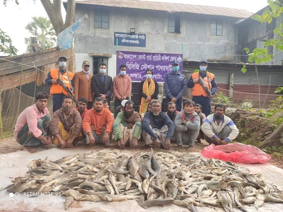 বরগুনা প্রতিনিধি: বরগুনার পাথরঘাটায় প্রায় ৩শ হাঙরের বাচ্চাসহ ১৩ জেলেকে আটক করেছে কোস্টগার্ডে দক্ষিনজোন পাথরঘাটা স্টেশনের সদস্যরা। পরে তাদেরকে জরিমানা করে ছেরে দেয়া হয়। আজ বুধবার (২০ জানুয়ারি) দুপুর ২টার