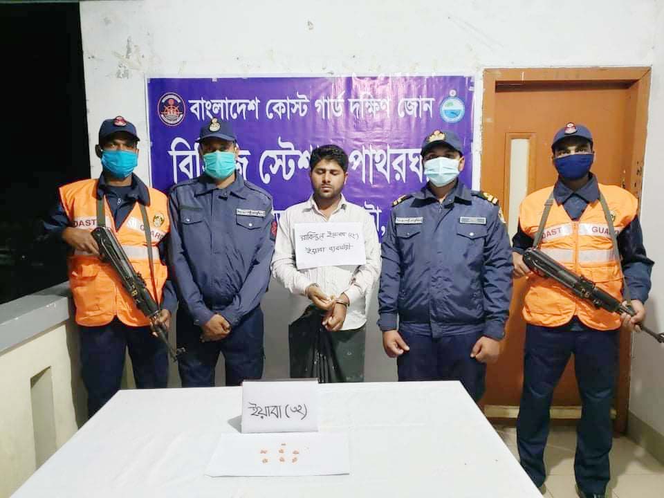 বরগুনা প্রতিনিধি: বরগুনার পাথরঘাটায় ৩২ পিস ইয়াবাসহ রাকিবুল ইসলাম (২৮)কে আটক করেছে পাথরঘাটা কোস্টগার্ড। রাত এগারোটার দিকে উপজেলার ঘুটাবাছা গ্রাম থেকে তাকে আটক করা হয়।আটক যুবক কালমেঘা ইউনিয়নের সরোয়ার ইসলাম