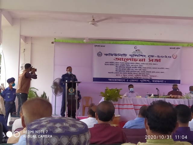 বরগুনা প্রতিনিধি ॥ “মুজিববর্ষের মুলমন্ত্র কমিউনিটি পুলিশিং সর্বত্র” এই শ্লো-গানকে সামনে রেখে বরগুনায় কমিউনিটি পুলিশং ডে পালিত।     এ উপলক্ষে শনিবার সকাল ১১ টায় পুলিশ লাইনে এক আলোচনা সভা