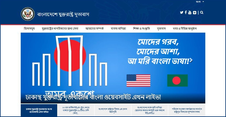 দূতাবাসের বাংলা ভাষার ওয়েবসাইটটির সঙ্গে আমাদের ইংরেজি ওয়েবসাইটের অনেক মিল থাকবে। এটি যুক্তরাষ্ট্র ও বাংলাদেশের ক্রমপ্রসারমান দ্বিপক্ষীয় সম্পর্ক, ব্যবসা-বাণিজ্যের সুযোগ, ভ্রমণ ভিসা, সংস্ককৃতিগত, শিক্ষাগত ও পেশাগত এক্সচেঞ্জ কর্মসূচিসহ অনেক কিছু