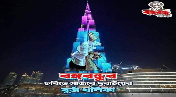 বাংলাদেশের স্বাধীনতার সুবর্ণজয়ন্তী উপলক্ষে মধ্যপ্রাচ্যের দেশ সংযুক্ত আরব আমিরাতে অবস্থিত বিশ্বের সর্বোচ্চ উচ্চতার টাওয়ার বুর্জ খলিফায় প্রদর্শন করা হবে জাতির পিতা বঙ্গবন্ধু শেখ মুজিবুর রহমানের ছবি। ১৭ মার্চ বিশ্বের সর্বোচ্চ