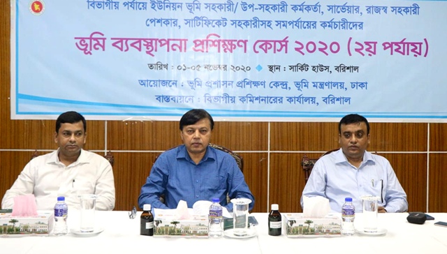 বরিশাল বিভাগীয় পর্যায়ে ভূমি সংশ্লিষ্ট কর্মকর্তা এবং কর্মচারীদের অংশগ্রহণে ‘ভূমি ব্যবস্থাপনা প্রশিক্ষণ কোর্স-২০২০ এর উদ্বোধনী অনুষ্ঠান অনুষ্ঠিত হয়েছে। রোববার (০১ নভেম্বর) সকাল সাড়ে ৯টায় ভূমি মন্ত্রণালয়ের ভূমি প্রশিক্ষণ কেন্দ্র’র আয়োজনে