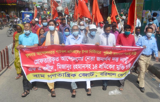শামীম আহমেদ ॥ খুলনায় আন্দোলনরত পাটকল শ্রমিকদের উপর নির্বিচারে পুলিশী হামলার বিচারের দাবী সহ গ্রেফতারকৃত আন্দোলন নেতা জনার্দন দত্ত নান্টু, এফ,এ রসিদ, মিজানুর রহমান সহ ১৪ শ্রমিকের নিঃশর্ত মুক্তির দাবীতে
