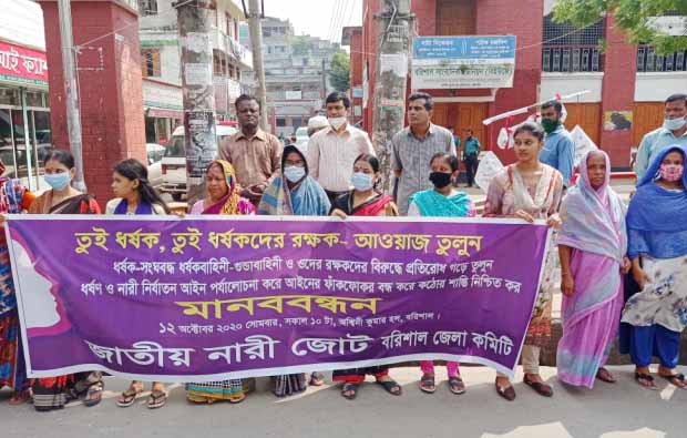 গতকাল সোমবার সকাল ১০টায় বরিশাল নগরীর অশ্বিনী কুমার হলের সামনে জাতীয় নারী জোটের মানববন্ধন ও সংক্ষিপ্ত সমাবেশ অনুষ্ঠিত হয়েছে। সমাবেশে সভাপতিত্ব করেন নারী জোটের রনু বেগম। বক্তব্য রাখেন, জাসদ বরিশাল