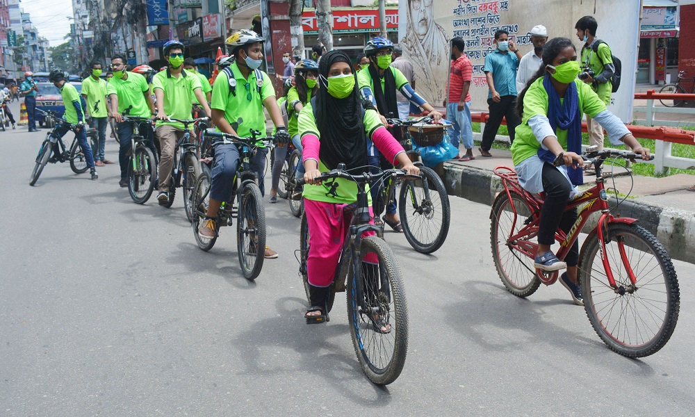 শামীম আহমেদ॥ বরিশাল নগরীর অভ্যন্তরে বে-দখল হয়ে যাওয়া খালগুলো দখল ও দূষণমুক্ত করা সহ নগরীতে সাইকেল লেন করার দাবীতে মানববন্ধন ও সাইকেল র‌্যালি করেছে লাল সবুজ সোসাইটি সংগঠনের তরুর-তরুনী সদস্যরা।