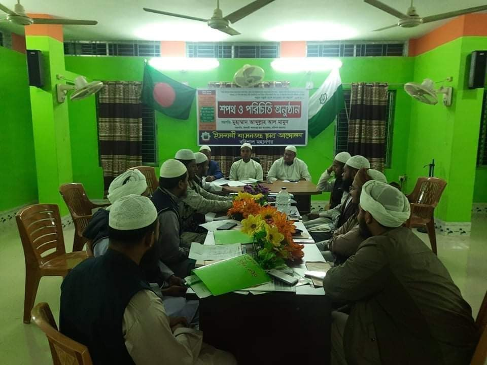 গত ১৯ জানুয়ারী চাদমারী এমসি অডিটোরিয়ামে ইসলামী শাসনতন্ত্র ছাত্র আন্দোলন বরিশাল মহানগর শাখার সভাপতি মুহাম্মাদ আব্দুল্লাহ আল মামুন এর সভাপতিত্বে সাধারণ সম্পাদক মুহাম্মাদ জাহিদুল ইসলাম এর সঞ্চালনায় শাখার শপথ অনুস্ঠান