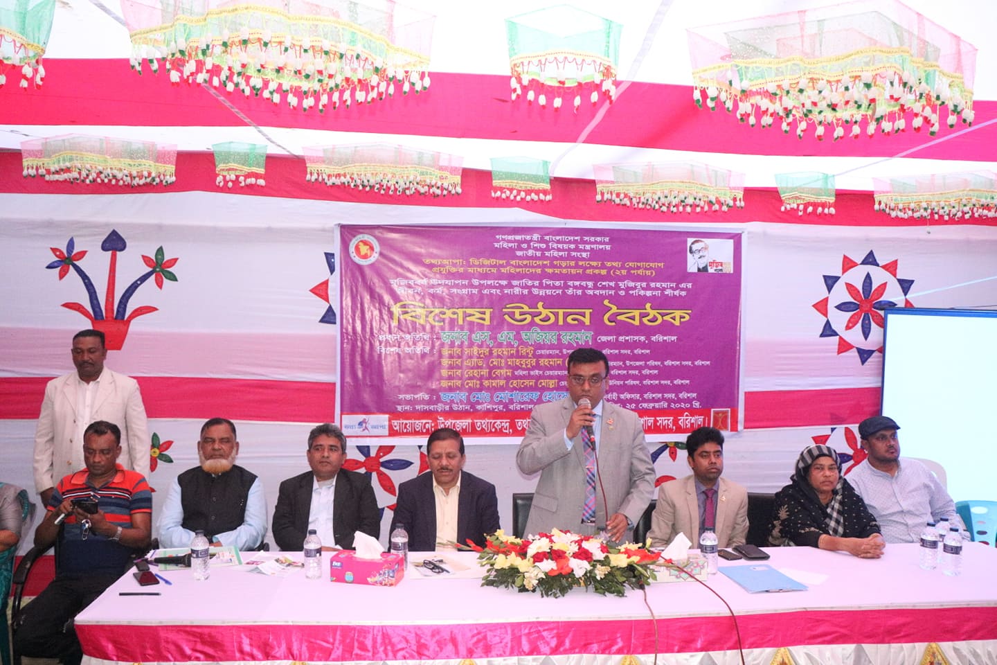 শেখ হাসিনার বারতা নারী-পুরুষ সমতা এই স্লোগান নিয়ে আজ ২৫ ফেব্রুয়ারি মঙ্গলবার সকাল ১০ টায়। বিভাগীয় কমিশনারের কার্যালয় বরিশাল এর সহযোগিতায়, মহিলা বিষয়ক অধিদপ্তর বরিশাল এর আয়োজনে। নগরীর অশ্বিনী কুমার